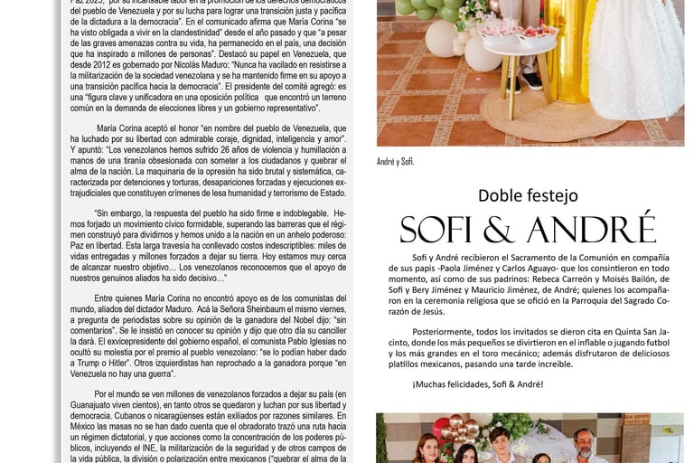 La ceremonia religiosa se ofició en la Parroquia del Sagrado Corazón de Jesús, donde familiares y amigos se unieron en oración para celebrar este importante paso en la vida espiritual de los pequeños.